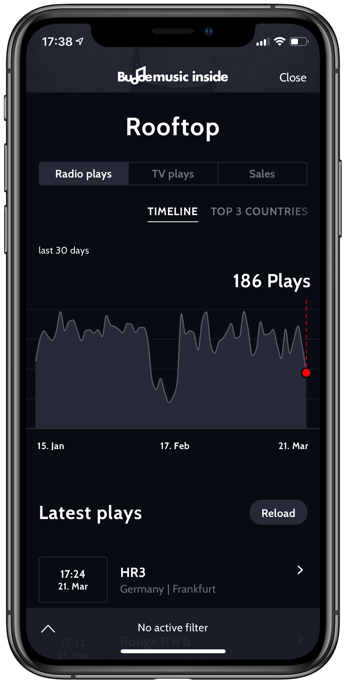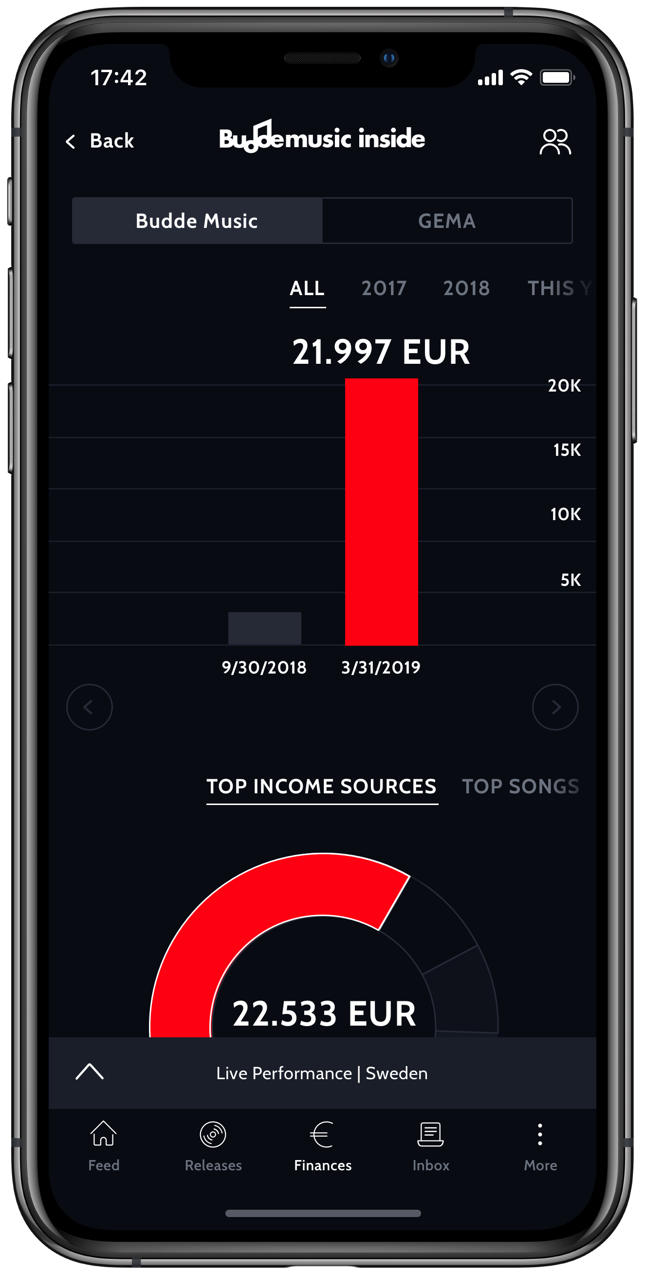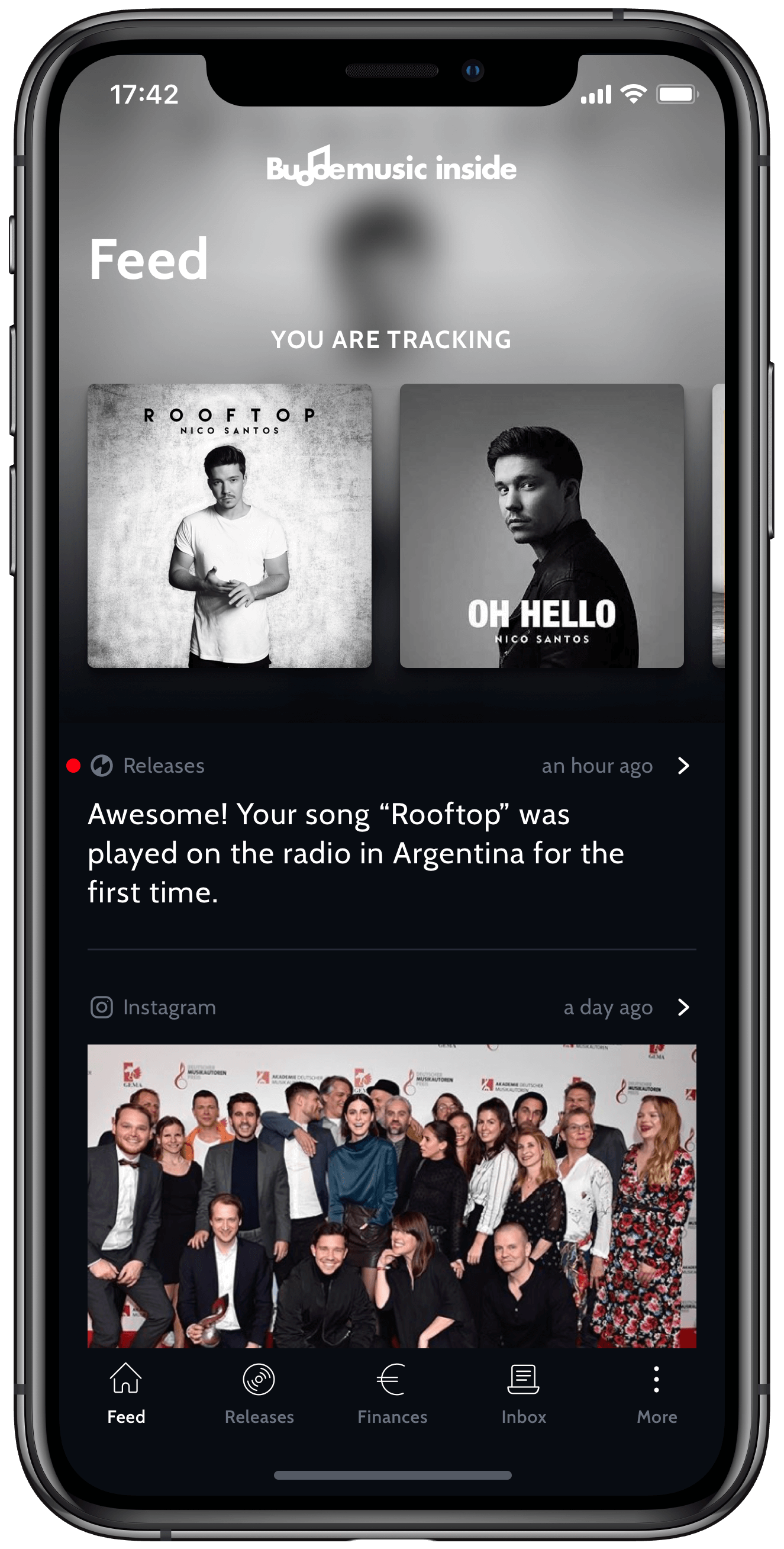 Mit Buddemusic inside behalte ich trotzdem den Überblick. Die App hält mich auf dem Laufenden über alles was mit meiner Musik passiert.